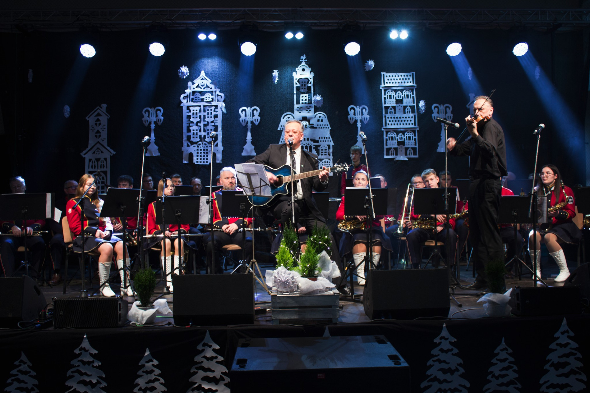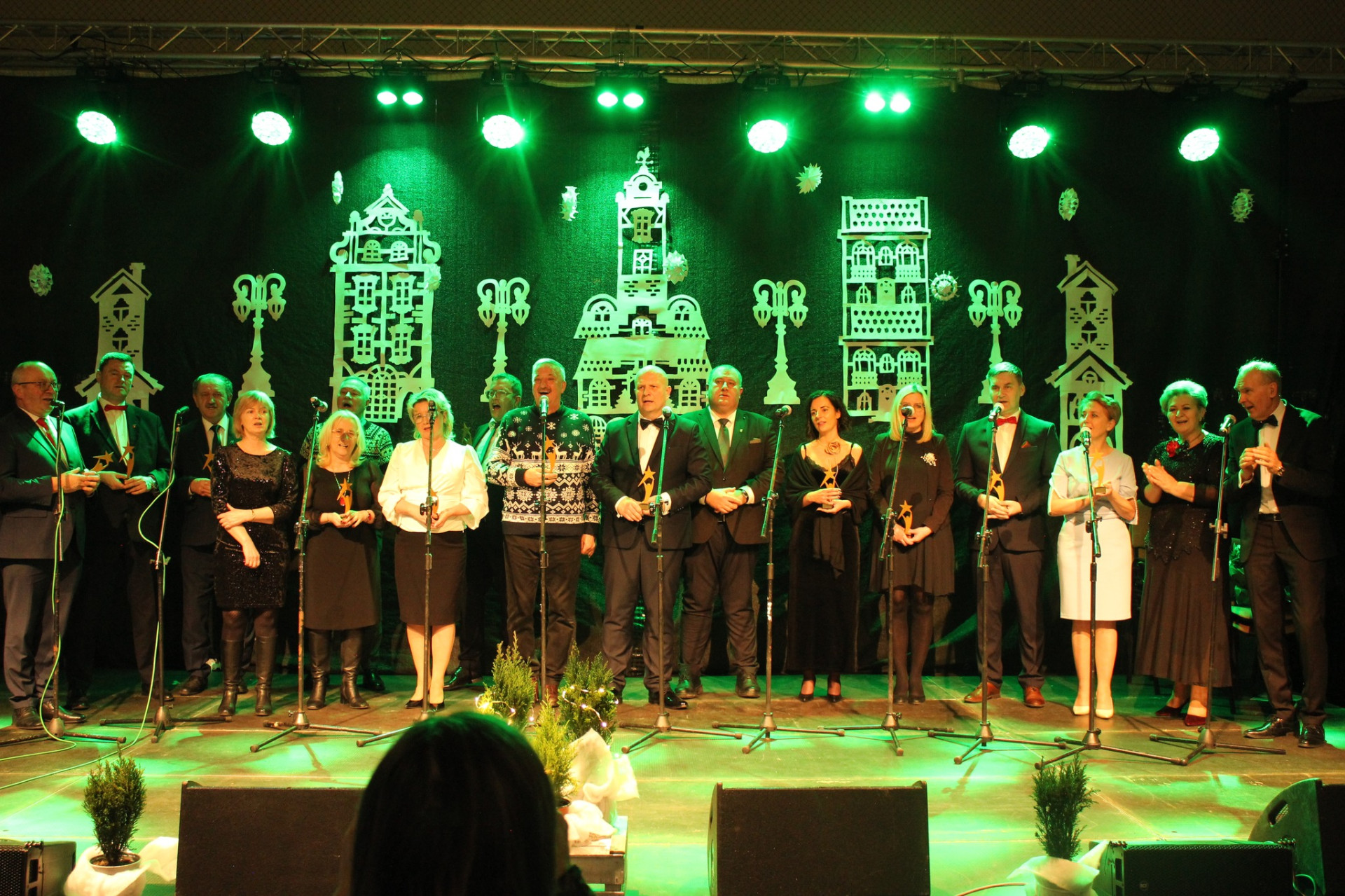 Delegacje z samorządów – starosta, wójtowie, burmistrzowie, radni i urzędnicy – zaprezentowały wylosowane kolędy w autorskich aranżacjach. Na scenie wystąpiła również Orkiestra Dęta z Gminnego Ośrodka Kultury w Krzymowie.