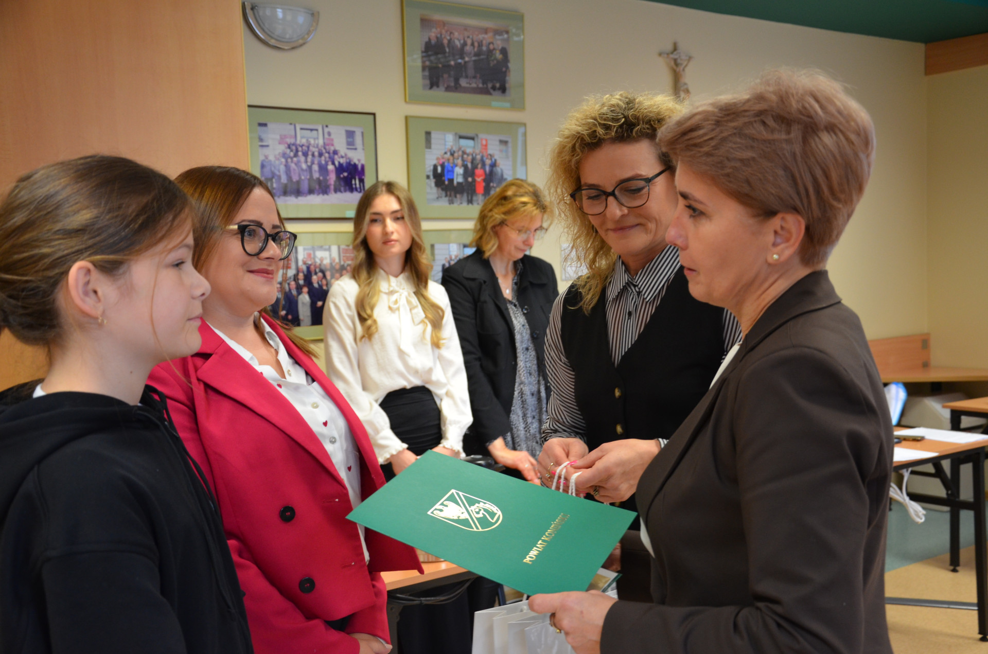 Sesja Rady rozpoczęła się od przekazania przedstawicielce zespołu My Voice Kids „cegiełki wsparcia” w organizacji wyjazdu siedmiu utalentowanych dziewcząt z powiatu na Międzynarodowy Festiwal Piosenki w Berlinie EURO POP CONTEST 2025.