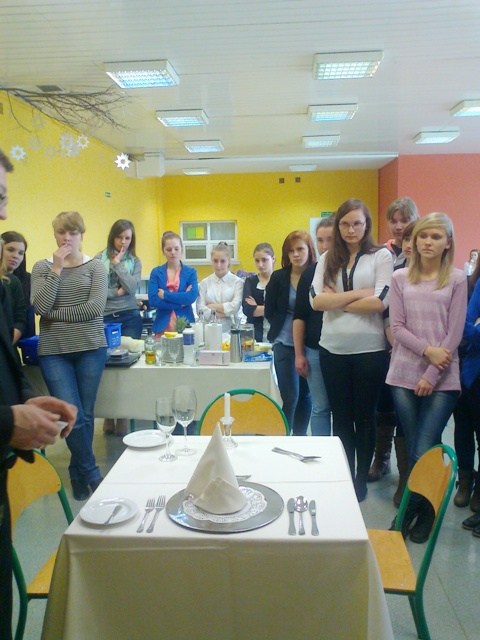 Warsztaty „Jak oczarować gościa”, czyli jak profesjonalnie obsłużyć gościa w restauracji, przeprowadził Grzegorz Górniak z Akademii Kelnerskiej 8 marca w Zespole Szkół Ekonomiczno-Usługowych. Autor podręcznika kelnerskiego – „Sztuka usługiwania” od lat szkoli uczniów, nauczycieli oraz restauratorów.