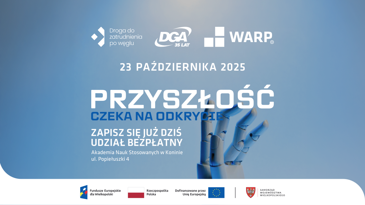 Wielkopolska Agencja Rozwoju Przedsiębiorczości Sp. z o.o. wraz z DGA S.A. zapraszają na niezwykłą konferencję „Przyszłość czeka na odkrycie”, która odbędzie się 23 października w Auli Akademii Nauk Stosowanych w Koninie.