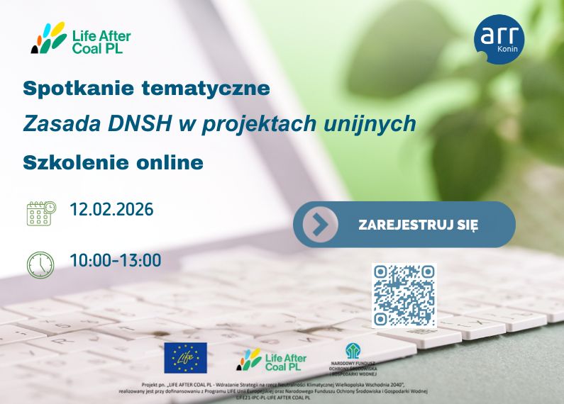Agencja Rozwoju Regionalnego S.A. w Koninie zaprasza do udziału w szkoleniu online poświęconym zasadzie DNSH (Do No Significant Harm) oraz weryfikacji klimatycznej inwestycji w perspektywie finansowej UE 2021–2027. Szkolenie odbędzie się 12 lutego (czwartek).