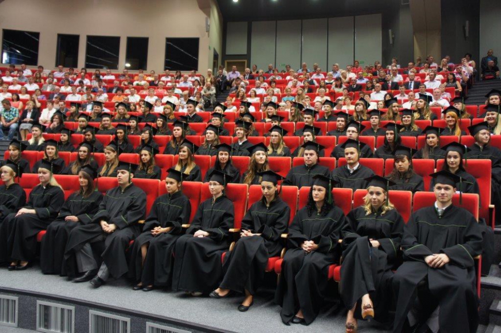 W sobotę i niedzielę aula Centrum Wykładowo-Dydaktycznego przy ul. Popiełuszki była wypełniona szczelnie aż cztery razy. W sobotę podczas dwóch uroczystości dokumenty absolutoryjne odebrali absolwenci kierunków pedagogika (138 osób) i edukacja artystyczna w zakresie sztuki muzycznej (20) oraz filologia (70) i praca socjalna (96). W niedzielę, najpierw odbyło się absolutorium dla politologii (61) i zarządzania (182), następnie dla kierunków technicznych, czyli mechaniki i budowy maszyn (48), budownictwa (41) i inżynierii środowiska (32).