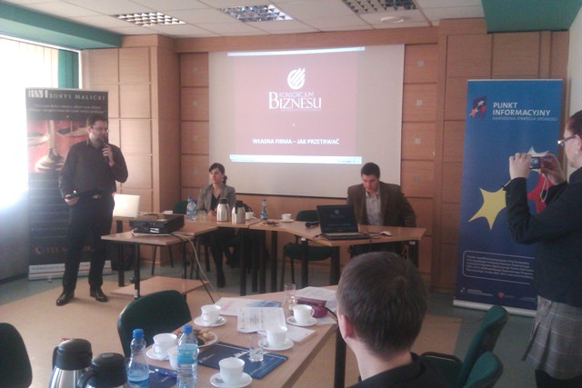 O możliwości pozyskania środków na rozpoczęcie działalności gospodarczej, a także prawach i obowiązkach przedsiębiorcy czy prawnych aspektach związanych z prowadzeniem działalności gospodarczej rozmawiano podczas spotkania „Wsparcie dla biznesu”, które odbyło się 25 lutego 2014 r.